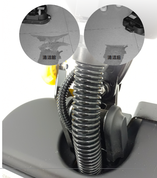 Magnetic double brush, easy to disassemble. Double brush plate design, cleaning diameter and width up to 430mm. The speed can reach 350 revolutions (150-180 revolutions for traditional floor scrubbers). More thorough and efficient cleaning